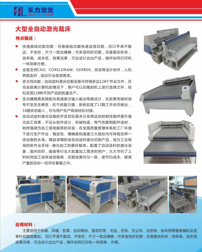 深圳市禾力激光設(shè)備有限公司主營產(chǎn)品有激光切割機,非金屬材料激光切割機,全自動激光切割機,布料激光切割機,亞克力激光切割機,有機玻璃激光雕刻機,觸摸屏激光切割機,視覺定位激光切割機、大型激光裁床、全自動送料皮革服裝切割機,咨詢電話:18002502550